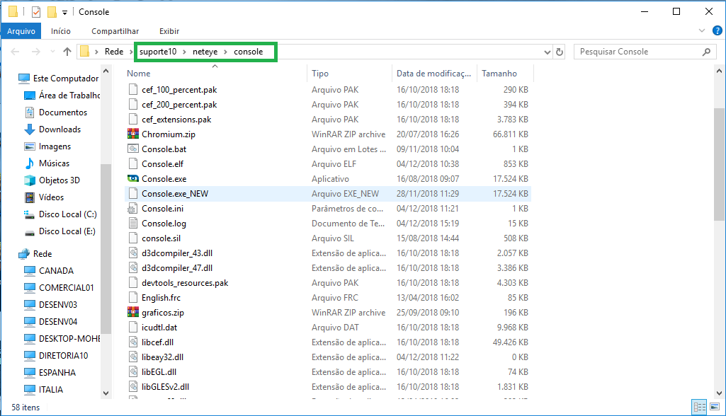 O primeiro passo é acessarmos a pasta compartilhada do NetEye na rede, onde por padrão se encontra no seguinte caminho: “SERVIDOR_NETEYE\Neteye\Console”. Porém, esse local pode ser alterado no momento da instalação do NetEye (caso o caminho não seja o padrão, é necessário verificar com o responsável pela instalação).