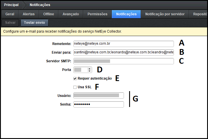 C – Servidor SMTP: Defina o servidor SMTP que será utilizado;